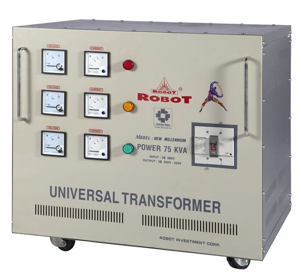 Biến Thế Đổi Điện 3 Pha Robot giúp chuyển đổi nguồn điện khi sử dụng, đảm bảo an toàn cho các thiết bị điện. bảo hành 3 năm và miễn phí vận chuyển khi mua Biến Thế Đổi Điện 3Pha Robot 75KVA.